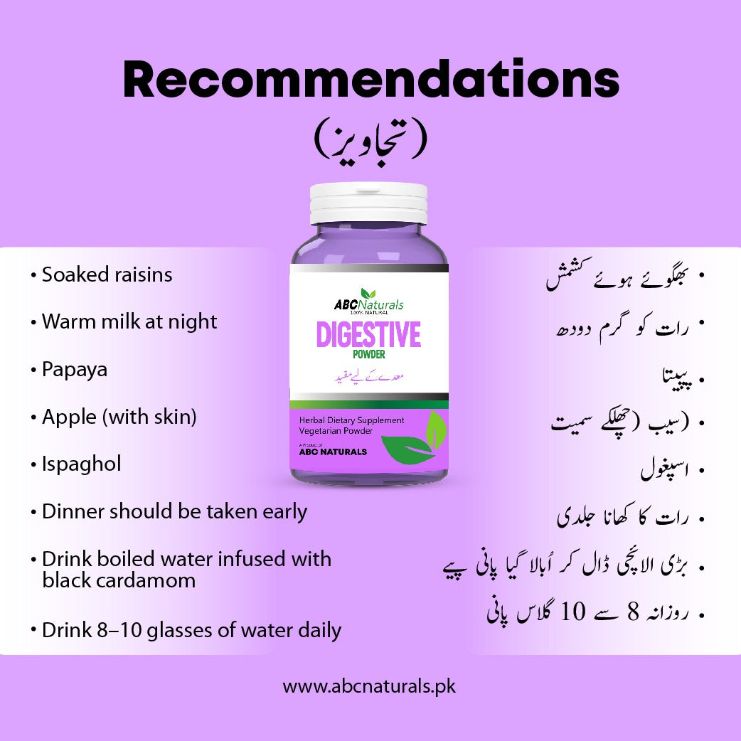 ہاضمے کی کمزوری اکثر بے قاعدہ کھانے، زیادہ کھانا، ذہنی دباؤ اور آنتوں کے نظام کی خرابی کی وجہ سے پیدا ہوتی ہے۔ یہ پروڈکٹ ہاضمے کو بہتر بنانے، غذائی اجزاء کے جذب میں مدد دینے اور کھانے کے بعد ہونے والی بے آرامی کو کم کرنے میں معاون ثابت ہوتی ہے۔